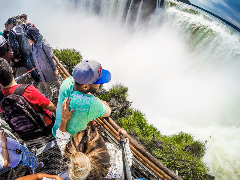 I’m not sure how to get to the trails from the entrance of the park since the Sheraton is located in the park but a quick 10 minute walk from our hotel led us to the free train that can take you to the upper and lower trails as well as Paseo Garganta del Diablo – the trail to Devil’s Throat. We decided to walk to Devil’s Throat and from what I read afterwards, that’s the trail that you do not want to miss as it is located at the highest point of the falls at a height of 269 feet. The trail wasn’t what I expected, it was actually an easy 1 kilometer walk on a bridge/walkway over the river with gorgeous views. When we reached the falls we were blown away by how powerful they were. The falls are made up of 275 individual falls over 1.67 miles, half of which spill over Garganta del Diablo; so as you’ll see in my photos below, it’s just epic. There is a cloud of mist that rises and falls so be sure to secure your electronics – my friend and I were so upset we didn’t bring showercaps lol. My hair was a disaster.